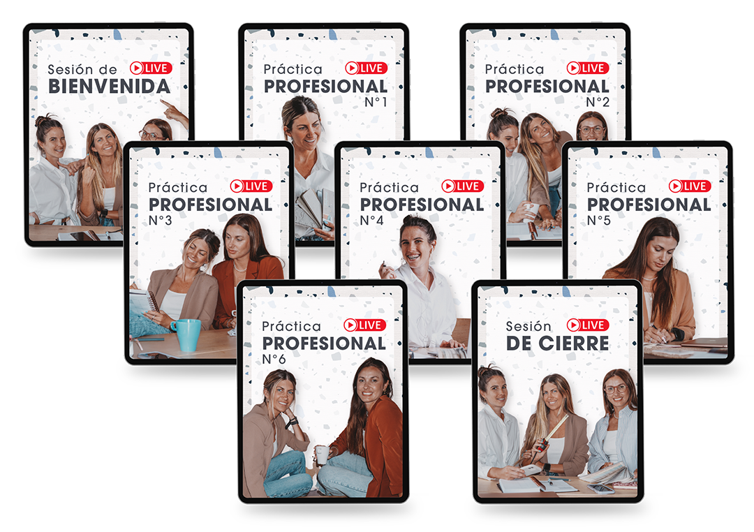 Las que se sumen antes del martes 17 de septiembre a las 23.59hs., recibirán una sesión extra de Práctica Profesional al mes de terminada la formación para que puedas aplicar todo lo visto, tener tus primeros clientes y preguntar todas tus dudas sobre tus servicios, clientes y obviamente todas las consults pendientes de la formación.