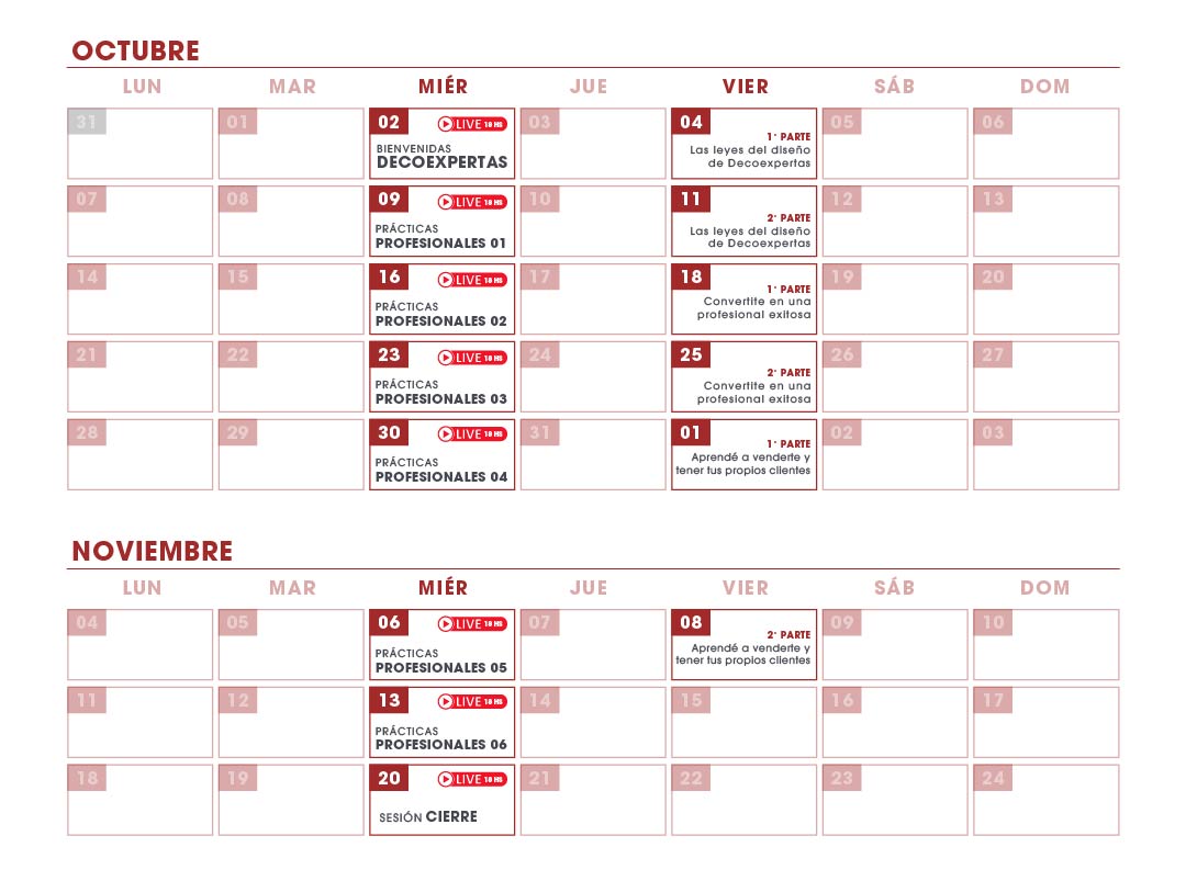 Estas serán las fechas y temas que recorreremos juntos para Convertirte en Decoexperta.